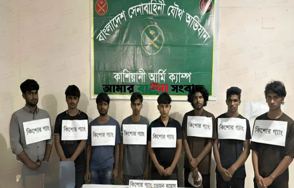 শনিবার (২৮ জুন) সকালে কাশিয়ানীর রাতইল হর্টিকালচার আর্মি ক্যাম্পের ক্যাপ্টেন ইস্তেখার তৌহিদ সাংবাদিকদের জানান, গোপন সংবাদের ভিত্তিতে মহেশপুর রেলস্টেশন এলাকায় অভিযান চালিয়ে কিশোর গ্যাং ‘ডেমন বয়েজ’ এর আট সক্রিয় সদস্যকে আটক করা হয়।
