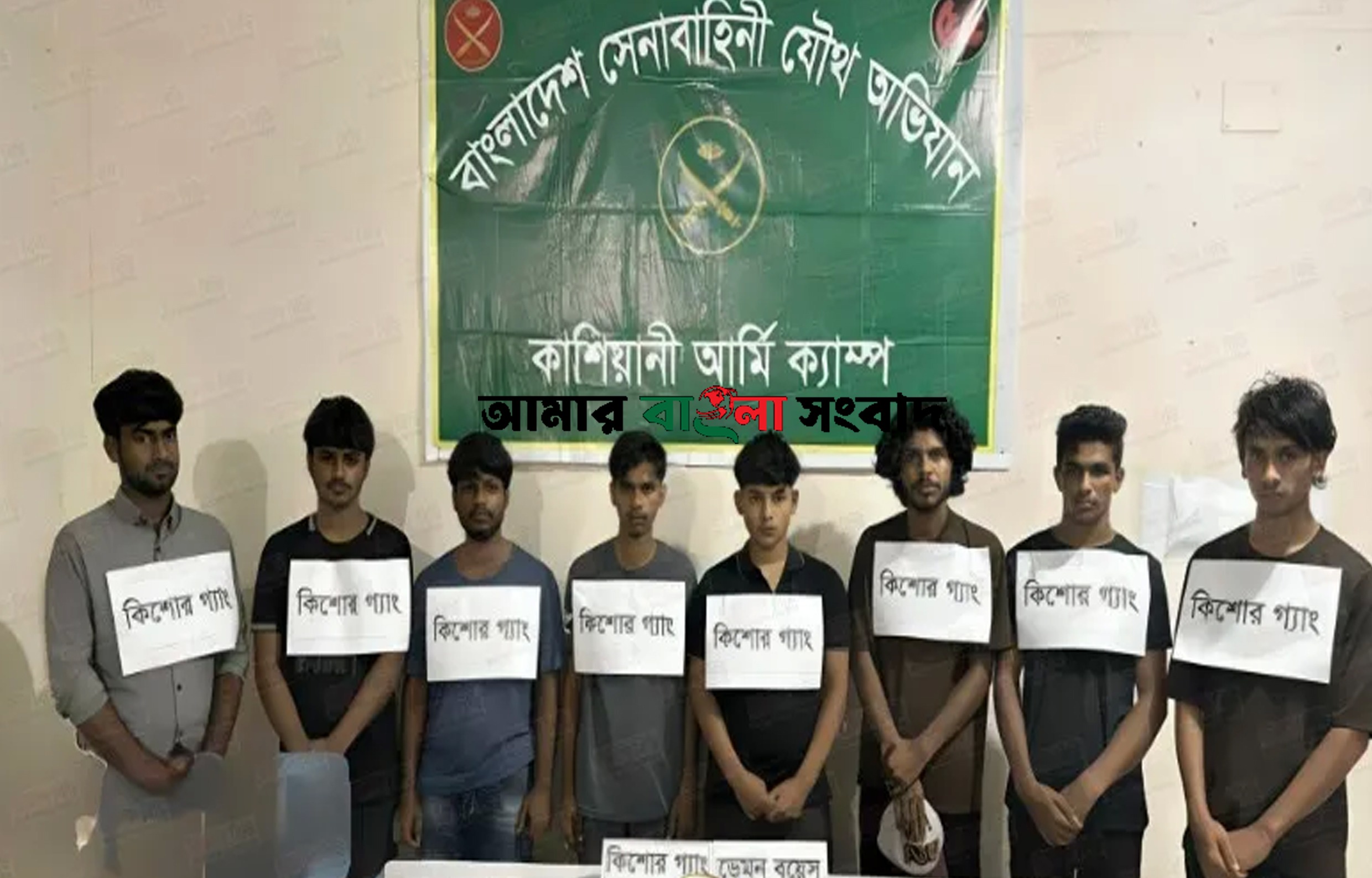 গোপালগঞ্জের কাশিয়ানী উপজেলায় যৌথবাহিনী একটি অভিযান পরিচালনা করে কিশোর গ্যাং ‘ডেমন বয়েজ’ এর আট সক্রিয় সদস্যকে গ্রেফতার করেছে। শুক্রবার (২৭ জুন) রাত সাড়ে ১০টার দিকে মহেশপুর রেলস্টেশন এলাকায় এই অভিযান চালানো হয়। গ্রেফতারকৃতদের কাছ থেকে গাঁজা, গাঁজা সেবনের কল্কি এবং মোবাইল ফোন উদ্ধার করা হয়েছে।