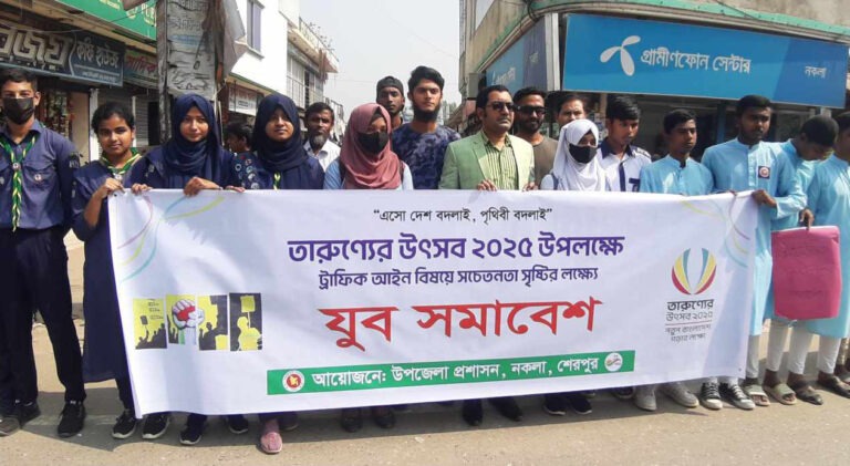 এসো দেশ বদলাই, পৃথিবী বদলাই’ এ প্রতিপাদ্যকে সামনে রেখে শেরপুরের নকলায় তারুণ্যের উৎসব ২০২৫ উদযাপন উপলক্ষ্যে ট্রাফিক আইন বিষয়ে সচেতনতা সৃষ্টির লক্ষ্যে যুব সমাবেশ হয়েছে।